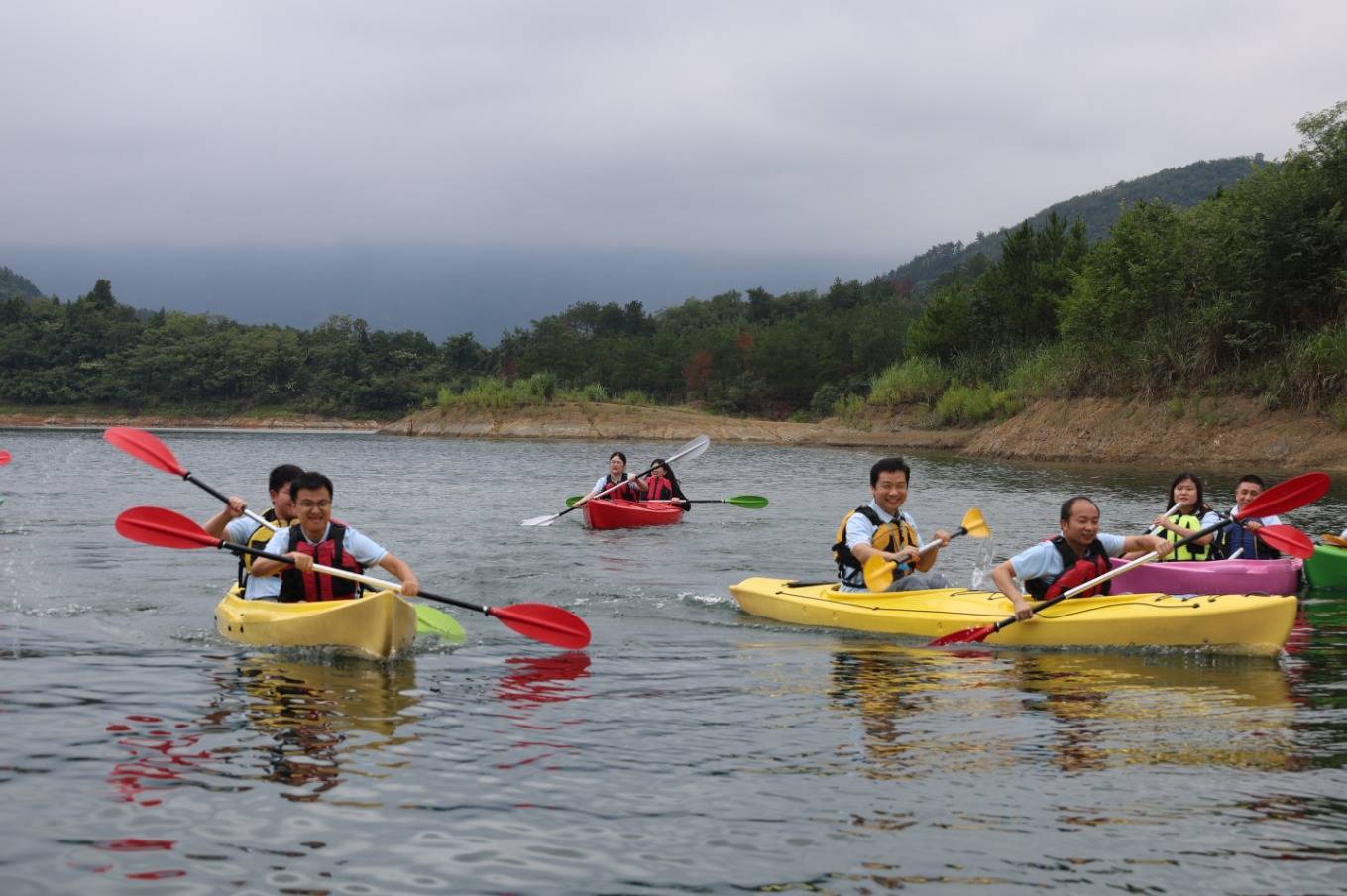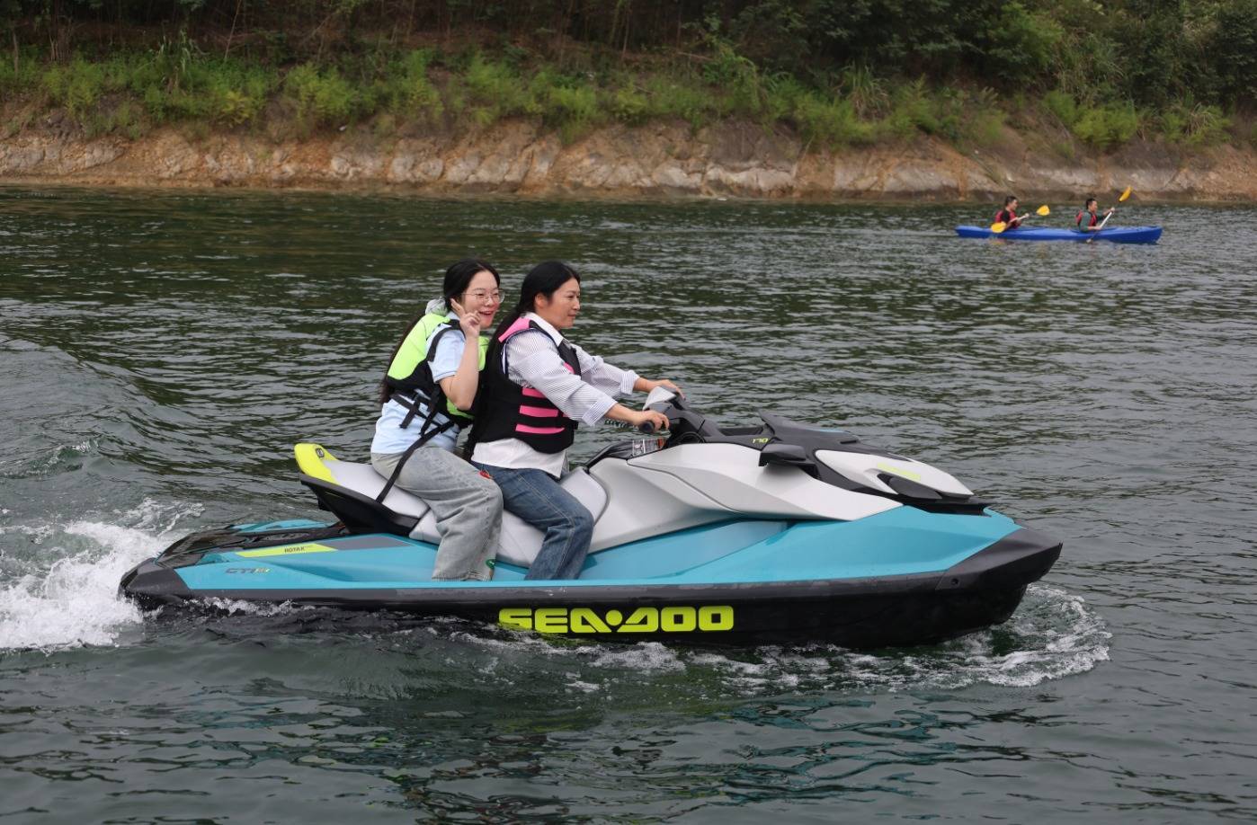 碧波荡漾的仙岛湖上,摩托艇与动力冲浪板疾驰如飞,划出阵阵浪花,游客的欢呼声与引擎声交织,构成秋日湖面最动感的画面。